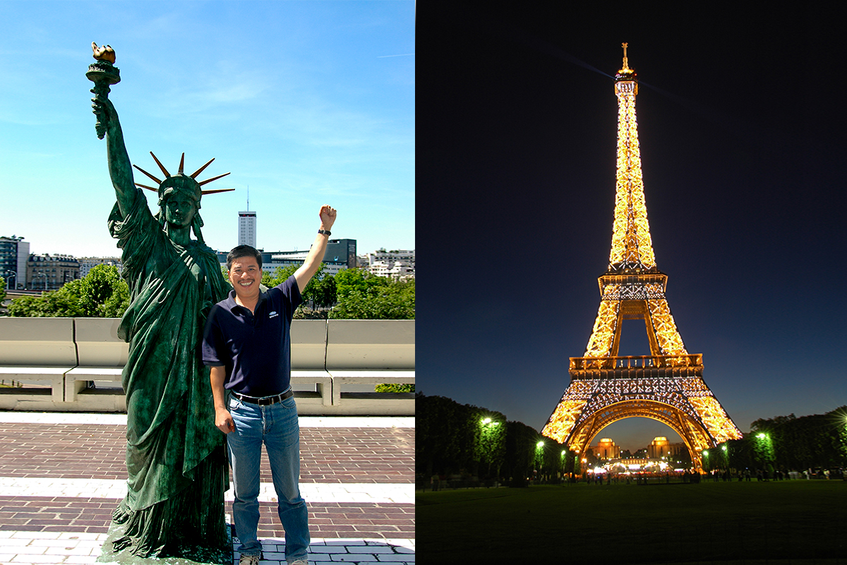 | Tháp Eiffel và Tượng Nữ Thần Tự Do đều trên cấu trúc khung thép của Eiffel |